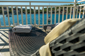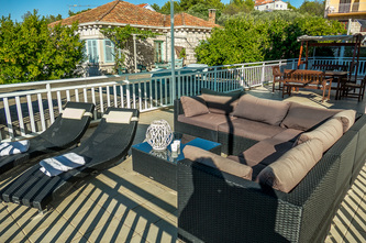 The building includes a common terrace with deck chairs, rocking chairs and a sitting area. In the garden is a grill available, and next to the building there are 2 boat mooring.
